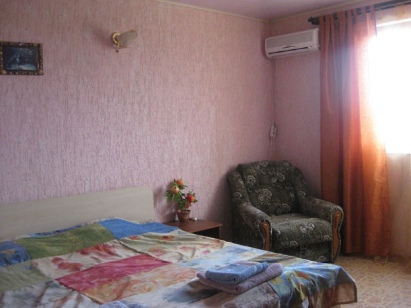 двуспальная кровать, стул, журнальный столик, кресло, TV, кондиционер, сан узел (туалет, душ, умывальник), стол, прикроватная тумбочка, шифоньер.